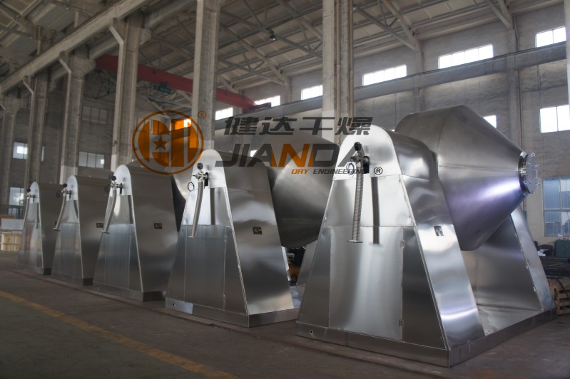 SZG系列雙錐回轉真空干燥機為雙錐形的回轉罐體,罐內在真空狀態下,向夾套內通入蒸汽或熱水進行加熱,熱量通過罐體內壁與濕物料接觸。濕物料吸熱后蒸發的水汽,通過真空泵經真空排氣管被抽走。由于罐體內處于真空狀態,且罐體的回轉使物料不斷的上下,內外翻動,故加快了物料的干燥速度,提高干燥效率,達到均勻干燥的目的。
