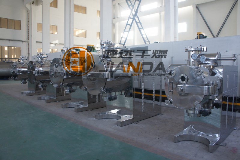 (1) 適應(yīng)性強(qiáng),應(yīng)用較廣。由于耙式真空干燥機(jī)利用夾套加熱、高真空排氣,所以幾乎對(duì)所有不同性質(zhì)、不同狀態(tài)的物料都適應(yīng),特別適應(yīng)易爆、易氧化、膏狀物料的干燥。